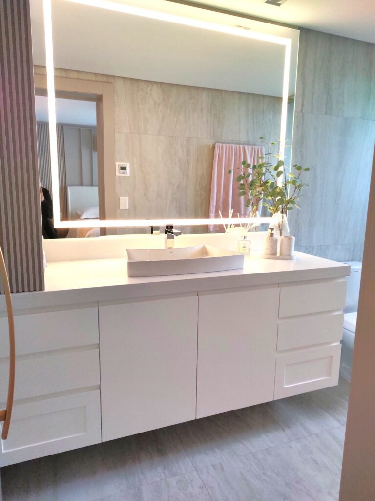 Soluções inteligentes de armazenamento maximizam a eficiência do espaço, enquanto os acabamentos de alto padrão não só agregam beleza estética, mas também durabilidade e resistência. Um banheiro feito sob medida não apenas atende às necessidades diárias, mas também se transforma em um refúgio pessoal, onde o conforto e o requinte se unem para oferecer uma experiência única de bem-estar e estilo.